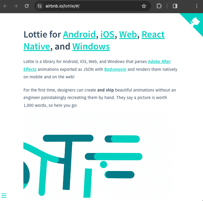 Lottie is an open-source animation file format and runtime library developed by Airbnb. The Lottie file format is a JSON-based animation file that describes motion graphics, which can include vector graphics, raster images, and text. Lottie animations are designed to be lightweight and scalable, making them ideal for use in mobile apps, websites, and other digital platforms. Lottie: https://airbnb.io/lottie/ Wikipedia about Lottie: https://en.wikipedia.org/wiki/Lottie_(file_format)